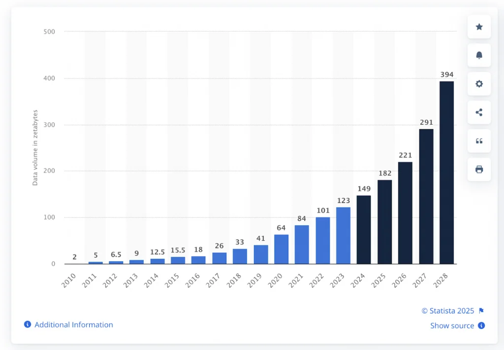 Data is growing fast. Each year the amount of data collected increases by approximately 23%. By 2025, it’s forecast to reach over 181 zettabytes (1 trillion GB). That means you have to manage much bigger and more complex datasets than before.