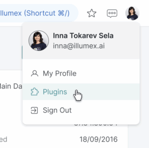 1. Download the Extension File – Via the illumex platform, click on the profile avatar and then click on Plugins.