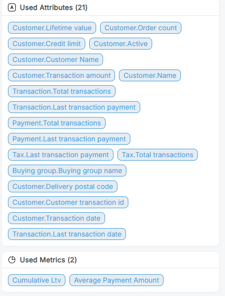 - At the dashboard level: see high-level metadata, tags, and related business metrics for the full report.