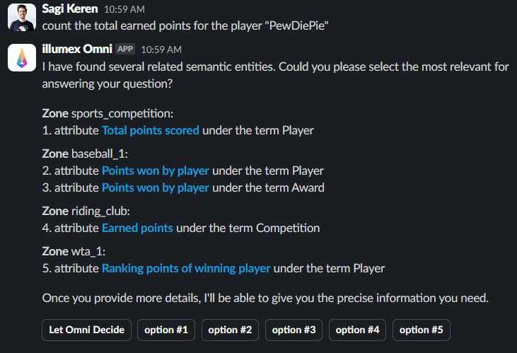 When you pose a data question, Omni engages immediately. Leveraging illumex’s Generative Semantic Fabric, it maps the question to the corresponding semantic and data objects. The query is then translated into SQL format and all of the above is forwarded to your selected LLM as a context. To maintain transparency, Omni interacts with you throughout this process, offering clarifications if your query seems ambiguous and even suggesting relevant follow-up questions. All of that is according to the augmented governance flows defined in the platform.