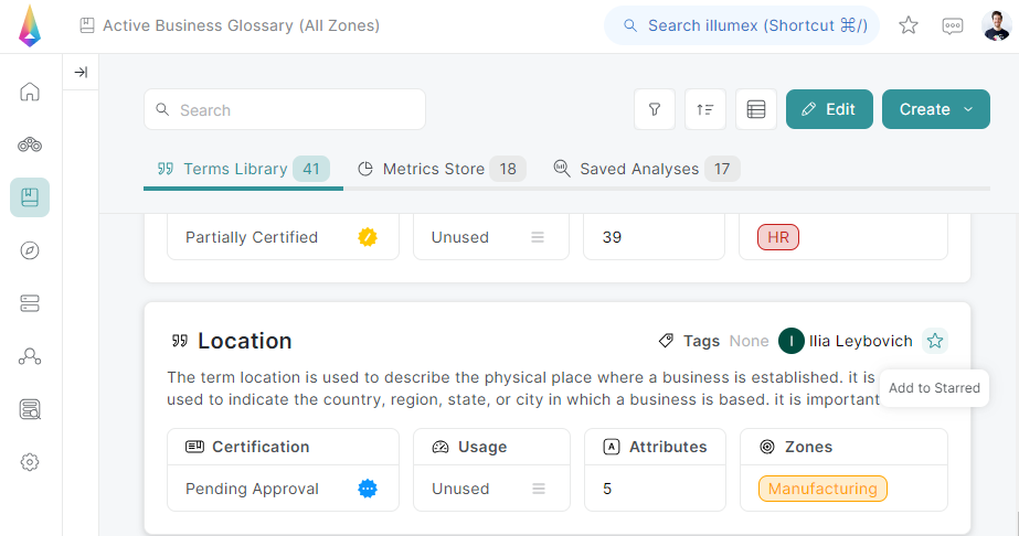 With illumex, you can mark any entity with a star, and all starred entities will be listed on a dedicated panel located on the upper panel for easy access.
